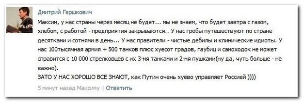 Снова соглашусь с Артёмом! То,что укры невменяемы,это факт,чтобы мы не делали,толку небудет! Это видно по их действиям,за последние 7-мь мес.,а последние 5-ь - они ополоумели! И улучшения ждать нет смысла! Вчера говорил с другом из Николаева,так всё общение ограничено высказыванием претензий! Привыкли к халяве ,а тут мозг вынесен напрочь пропагандой,хотя человек